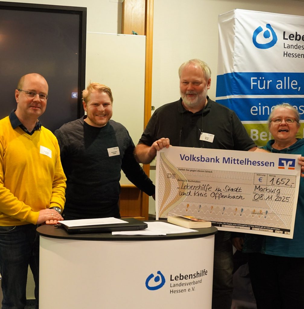 Im Rahmen der Mitgliederversammlung der Lebenshilfe Hessen wurde uns am vergangenen Samstag ein Förderscheck für unser Projekt „Bunte Bande – inklusiver Sport- und Tanzspaß“ überreicht.